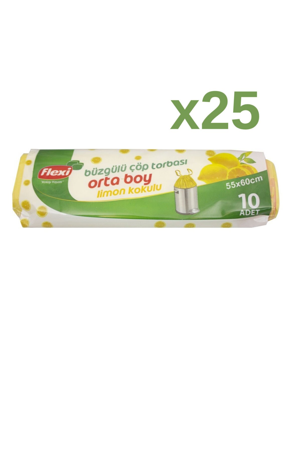 Flexi çöp torbası limon kokulu orta boy 25 paket 1 koli toplam 250 adet
