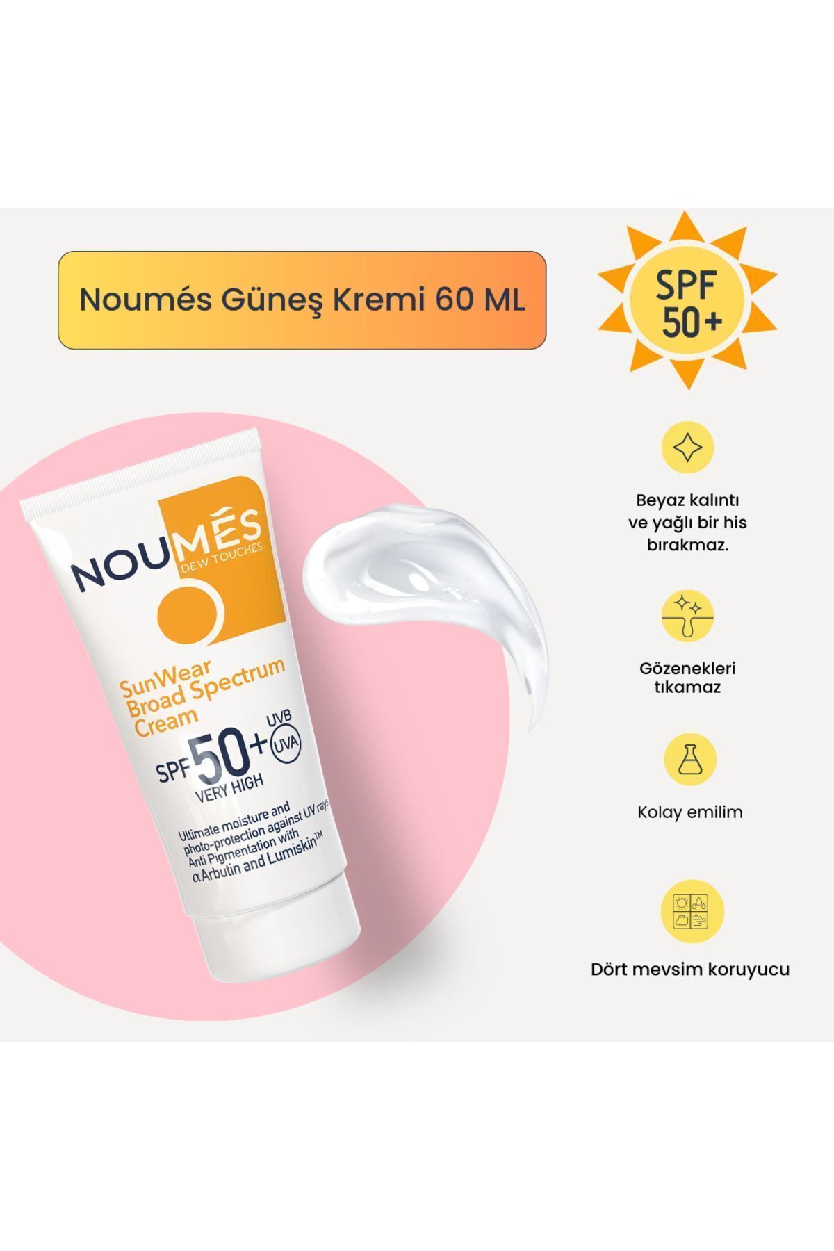 Noumes SPF 50+ Leke Karşıtı,Aydınlatıcı,Ton Eşitleyici,Akne Karşıtı,Nemlendirici Güneş Kremi 60 ML