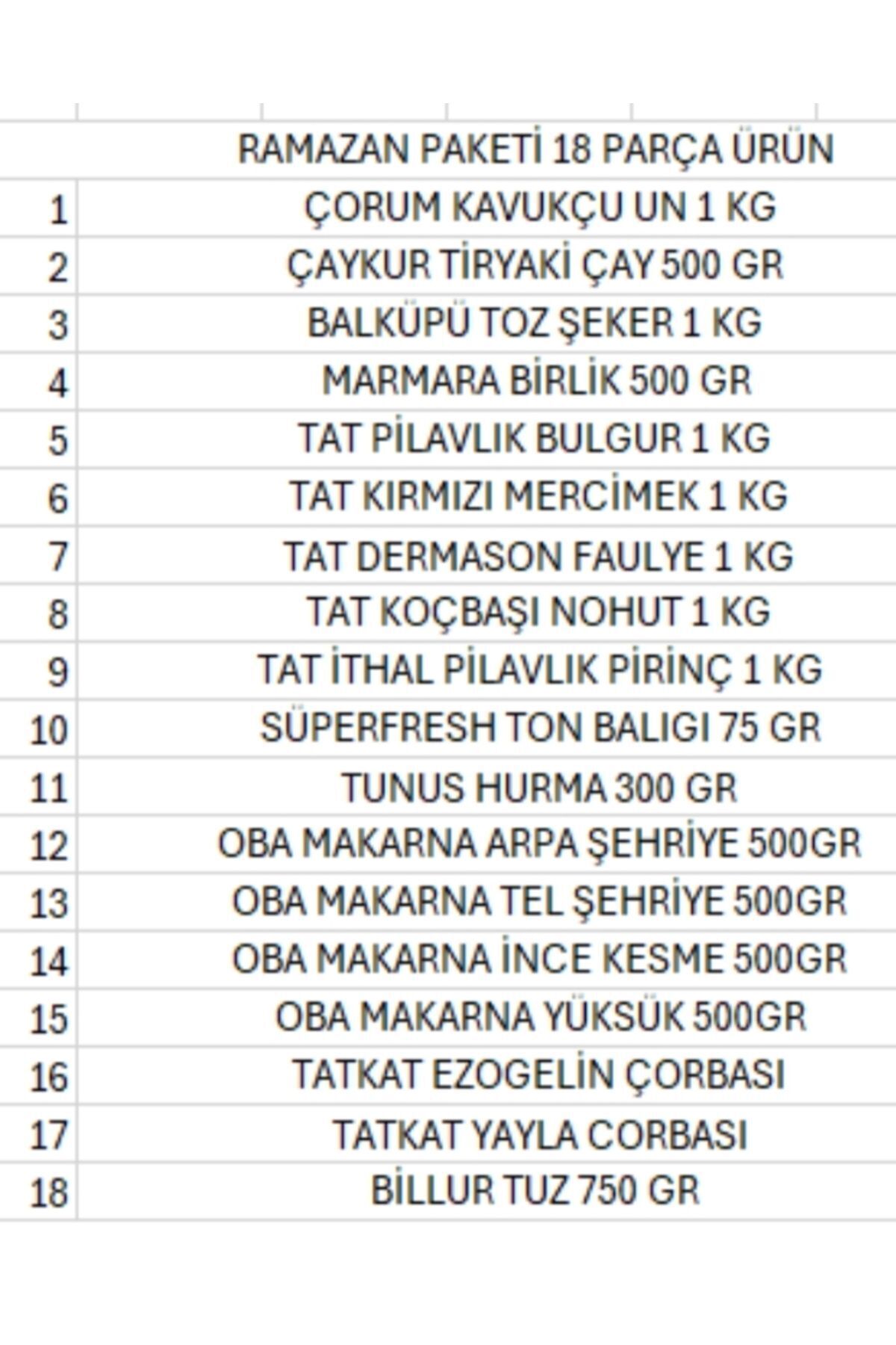 Ramazan paketi kumanya yardım gıda erzak kolisi 18 parça ürün ekonomik paket