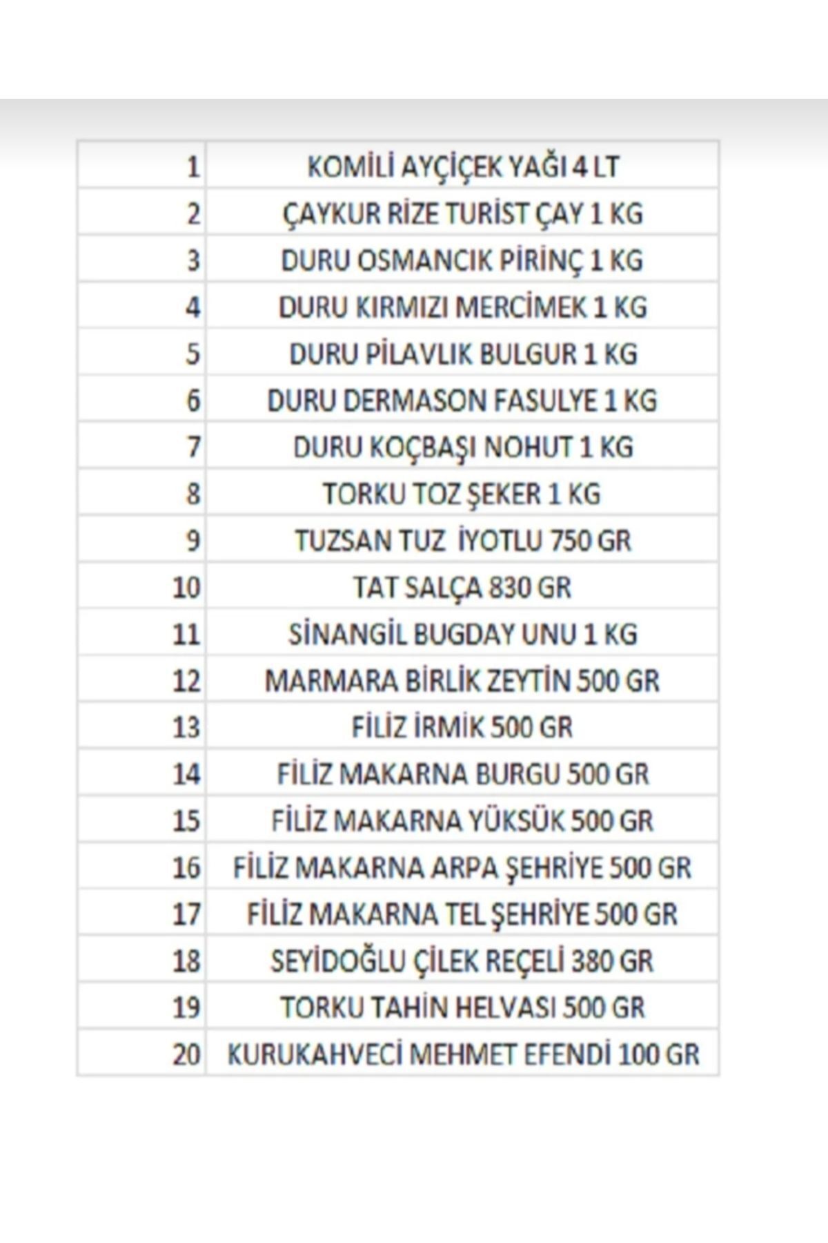 Ramazan paketi kumanya yardım gıda erzak kolisi lüks paket 20 parça ürün