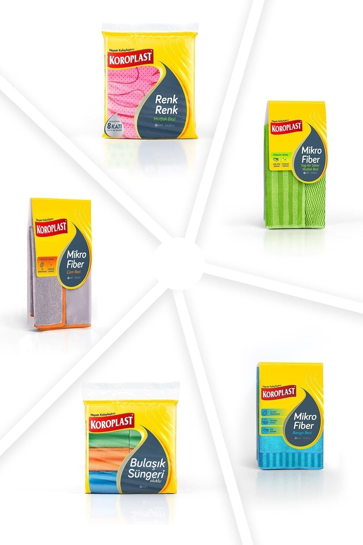 Temizliği birlikte kolay hale getirecek 5'li Fırsat Paketi Ürünler: KRP. OLUKLU BULAŞIK SÜNGERİ 8'Lİ; KRP. RENK RENK MUTFAK BEZİ 5'Lİ; KRP. MİKROFİBER YAĞ-KİR SÖKÜCÜ MUTFAK BEZİ; KRP. MİKROFİBER BANYO BEZİ 2'Lİ; KRP. MİKROFİBER CAM BEZİ;