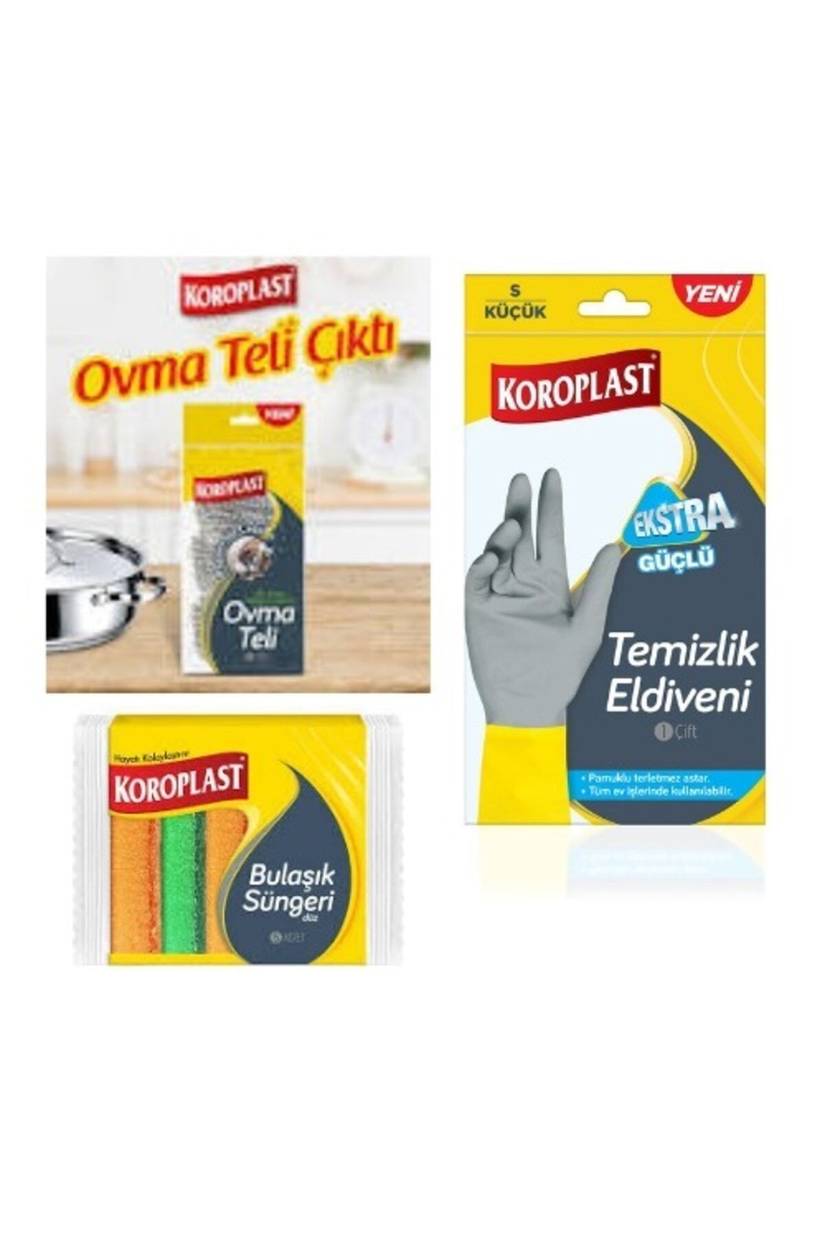 Temizlik Eldiveni Ekstra Güçlü S Boy 5 Li Oluklu Sünger Yeni Ovma Teli