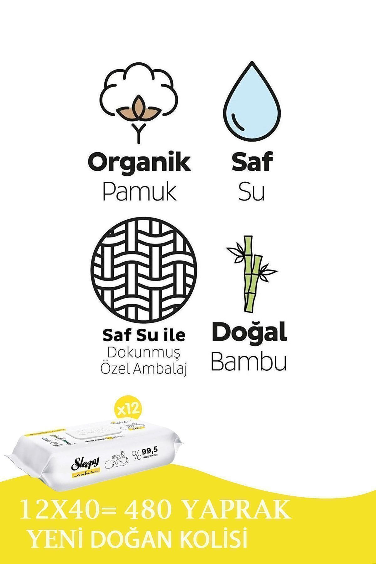 Sleepy Yenidoğan Islak Bebek Havlusu 12 adet kapalı özel bir kolide teslim edilmektedir.